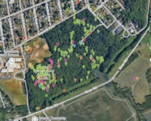 Map of overall iNaturalist observations. Points outside of the preserve are largely due to GPS accuracy errors.